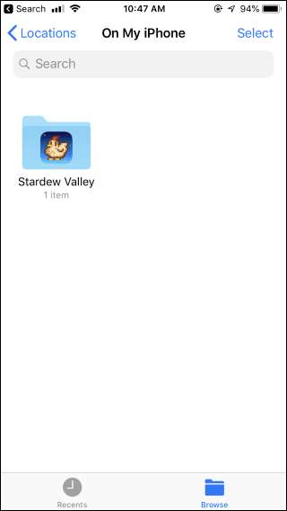 Ehhez indítsa el a „Fájlok” alkalmazást iPhone-ján vagy iPadjén, érintse meg az „On This iPhone” vagy „On This iPad” elemet, majd érintse meg a „Stardew Valley” mappát.