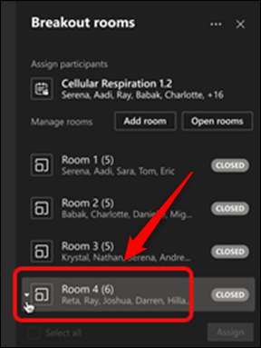 A jelölőnégyzetek használatával válasszon ki egy csoportot résztvevők azt akarjuk, hogy egy kitörés szobában, majd kattintson a „Assign”.