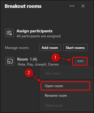 A szobák egyedileg történő megnyitásához kattintson a szoba melletti hárompontos ikonra, és válassza a "Megnyitás szoba" lehetőséget a menüből.