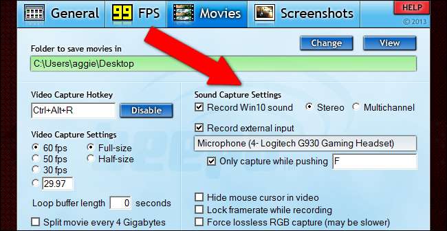 Ha a mikrofont is szeretné rögzíteni, kattintson a „Külső bemenet rögzítése” elemre, és ellenőrizze, hogy a játékmikrofonja (és nem a számítógép webkamerájának mikrofonbemenetje) van-e kiválasztva. Az „egyetlen rögzítés nyomás közben” opció nagyszerű módja annak, hogy csak push-to-talk funkcióval rögzítse a kívánt kommentárt vagy kommunikációt. Ha többjátékos online játékokat rögzít, akkor valószínűleg ugyanarra a kulcsra szeretné beállítani, mint a játék push-to-talk gombját.