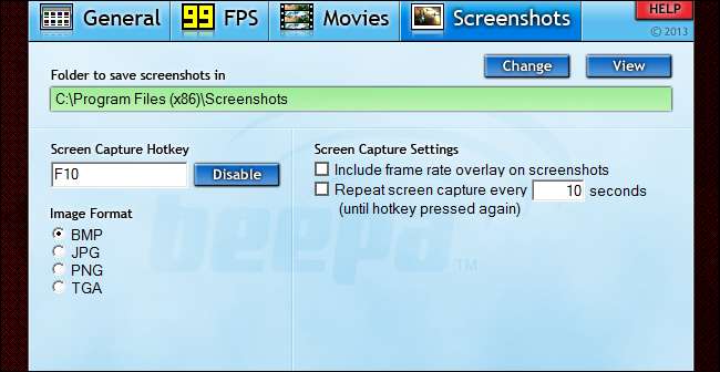 Könnyen bármikor elkészíthet képernyőképet a Windows 8 és a Windows 10 rendszerben a Win + Print Screen paranccsal (a Képek / Képernyőképek mappába kerülnek rögzítésre). És sok játék és átfedés, mint például a Steam, egyedi képernyőképet is kínálnak (a Steam játékok alapértelmezett parancsikonja az F12). De a Fraps képernyőképei fülön van egy egyéni rögzítési gomb, egy lehetőség a képkockasebesség megjelenítésére vagy elrejtésére, valamint egy „képernyő megismétlésének megismétlése” lehetőség, amely lehetővé teszi az egyéni intervallum kiválasztását. Ez az utolsó rész nagyon hasznos, ha azt a tökéletes képernyőképet szeretné elérni, hogy a gombot folyamatosan nem kell összetörnie: állítsa alacsonyra több képhez, vagy magasan kevesebbhez. Az automatikus felvétel leáll, ha ismét megnyomja a gombot. Tehát, ha már a Fraps-et használja játékrögzítéshez, érdemes megnéznie a képernyőkép beállításait is.