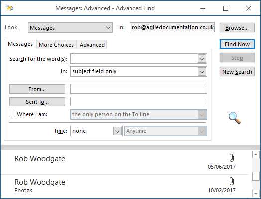 A keresési eredmények közül megnyithatja az egyes e-maileket, törölheti őket, vagy eltávolíthatja a mellékleteket. Ne felejtse el elmenteni a mellékleteket törlés vagy eltávolítás előtt, ha el kell mentenie őket.