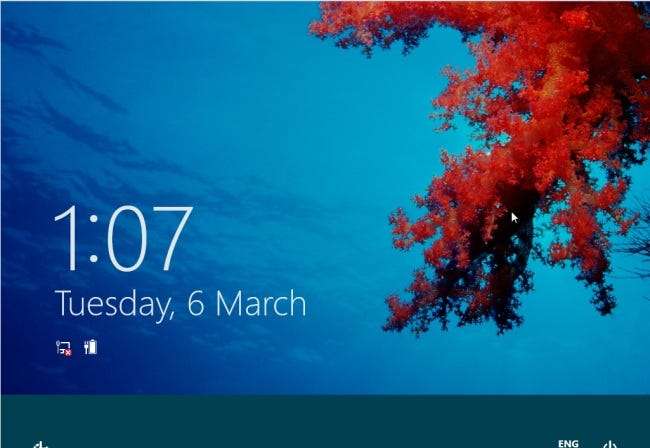 A Windows 8 összpontosítása az érintéses bemenetre nyilvánvaló a zárolási képernyőn. Nincs feloldó gomb, amelyre kattinthat a képernyőn.