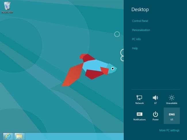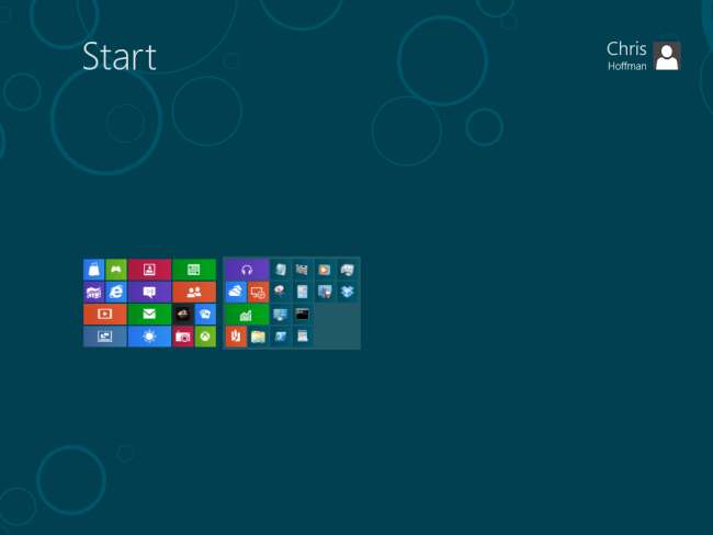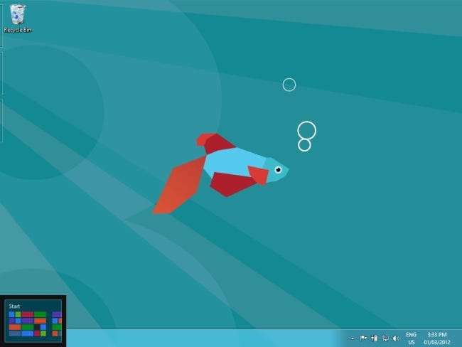 A képernyő bal alsó sarkában egy forró sarok váltotta fel a Start gombot. Vigye az egeret a sarokba, és kattintson a Start képernyőre való belépéshez.