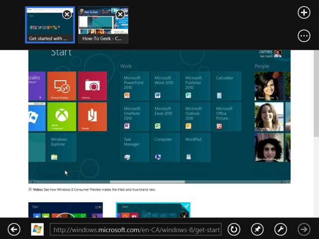 Kattintson a jobb gombbal az aktuális alkalmazás „alkalmazássávjának” megtekintéséhez. Például az Internet Explorer Metro verziójában a képernyő tetején fülbélyegképeket, a képernyő alján pedig a böngésző navigációs eszközeit fogja látni.