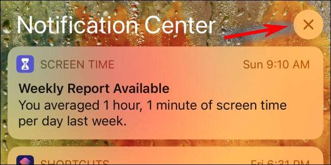 Az Értesítési központ, akkor húzza a jobb egy adott értesítést, hogy nyissa meg az eredeti alkalmazásban. Ha ellop gyorsan balra, akkor egyértelmű, hogy a bejelentést el. Vagy ha azt szeretnénk, hogy törölje az összes értesítést egyszerre érintse meg a kis „X” gomb mellett a „Notification Center” címsor, majd érintse meg a „Clear”.
