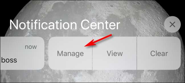 Azt is kikapcsolni bizonyos értesítéseket ezen a képernyőn a Lassan húzza az ujját balra egy értesítési buborék, és megérinti a „Kezelés” az opciók jelennek meg.