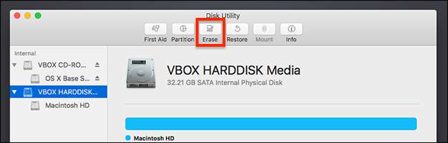 Most látni fogja a merevlemezek listáját. Kattintson az elsődleges meghajtóra, majd az „Erase” gombra