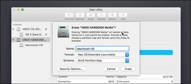 Ha valóban tiszta telepítést szeretne, akkor először meg kell törölnie a merevlemezt. Megmutattuk hogyan törölje biztonságosan a merevlemezt a Mac gépével , és ez a helyreállítási módban valójában nem különbözik a macOS-on belül végrehajtottaktól.