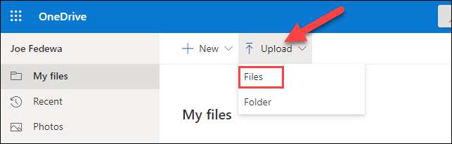 Válassza ki a "Feltöltés" legördülő menüpontot, és válassza a "Fájlok" lehetőséget.
