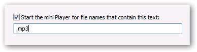Megjelenik egy „Indítsa el a mini lejátszót az ezt a szöveget tartalmazó fájlnevekhez” címet viselő szövegmező. Az alapértelmezett érték ebben a mezőben a „voiceatt.wav”, amelyet nyilvánvalóan arra terveztek, hogy a mini módot használja a hangpostai mellékletekhez.