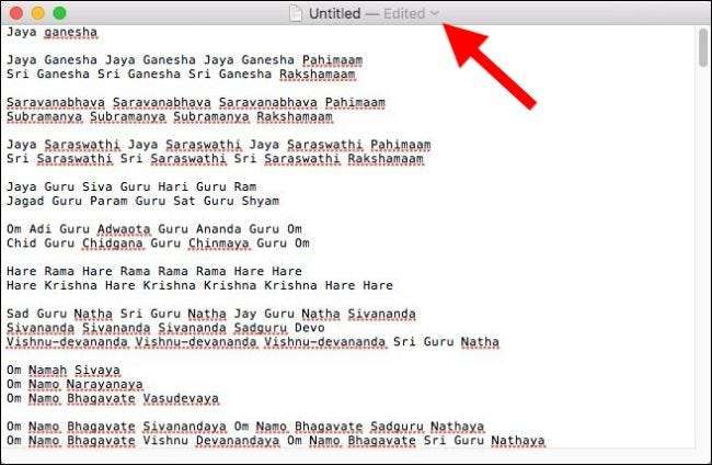 A következő képernyőképen egy cím nélküli TextEdit dokumentumot látunk. Észre fogja venni, hogy a kis nyílra kattintva (amelyet a nagy piros nyíl jelöl) átnevezhetjük a címsorból.