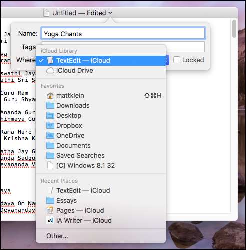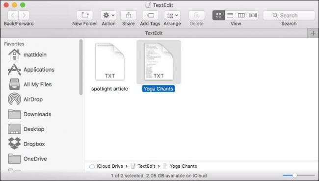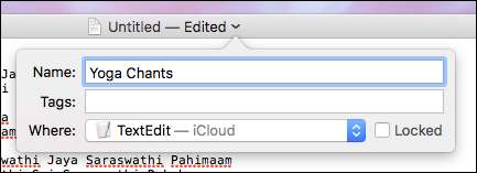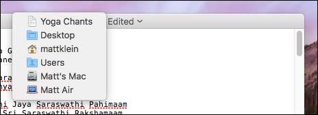 Próbáljon duplán kattintani a címsorra, és megmutatja, hol található a dokumentum. Ebben az esetben a szöveges dokumentumunk az iCloud mappánkban található.