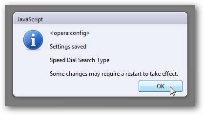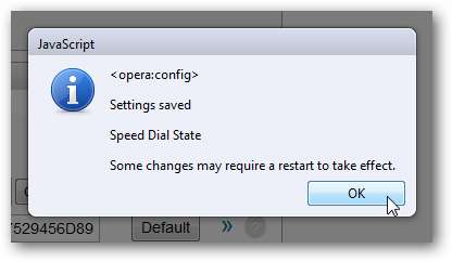 Ismét megjelenik egy üzenet a legutóbbi módosításról. Ezen a ponton előfordulhat, hogy újra kell indítania az Operát, hogy mindkét módosítás teljes mértékben érvényesüljön.