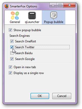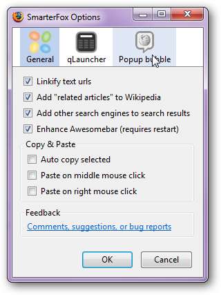 Vegye figyelembe az extra gombokat. Néhány lehetőséget kap a keresők számára, de sajnos nem nyitott. Ennek ellenére hihetetlenül hasznos a kifejezések ilyen egyszerű keresése, mivel a program automatikusan megnyitja az egyes kifejezéseket egy új fülön. A gombok hozzáadásához vagy eltávolításához lépjen az Eszközök, SmarterFox oldalra.