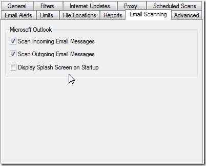 A ClamWin integrálódik a Microsoft Outlook programba, és az Outlook indításakor ClamWin splash képernyőt kap, hogy ellenőrizze, hogy védi-e.