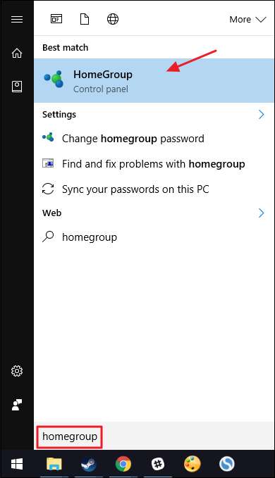 Először indítsa el a Homegroup vezérlőpult alkalmazást. Kattintson a Start gombra, írja be a „homegroup” parancsot, majd kattintson a kijelölésre, vagy nyomja meg az Enter billentyűt.