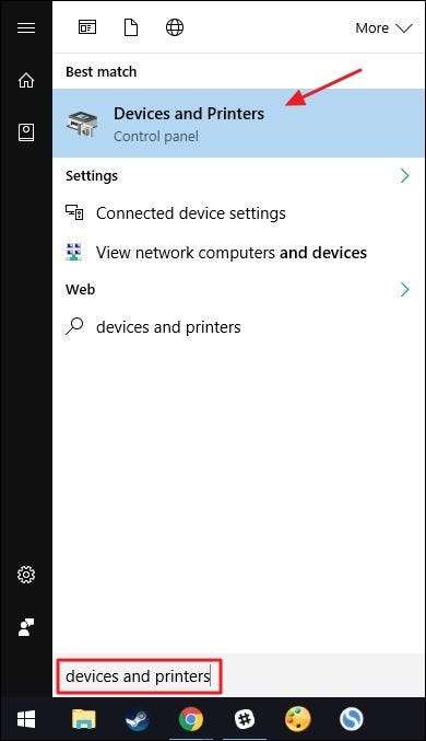 Kattintson a Start gombra, írja be az „eszközök és nyomtatók” kifejezést, majd nyomja meg az Enter billentyűt, vagy kattintson az eredményre.
