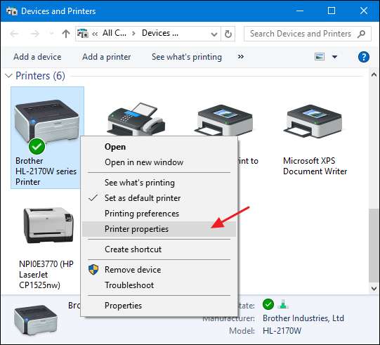 Kattintson a jobb gombbal a hálózattal megosztani kívánt nyomtatóra, majd válassza a „Nyomtató tulajdonságai” lehetőséget.