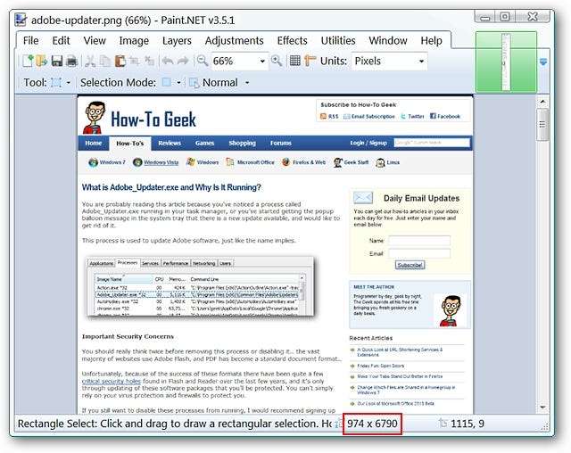 Itt van a képernyőkép, amelyet a Paint.NET-ben 66% -on megnyitott weboldalról készítettünk ... ez egy szép méretű képernyőkép, csaknem 6800 képpont hosszú.