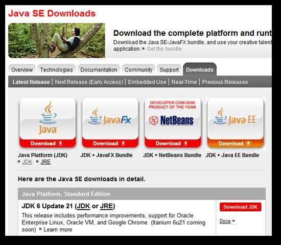A Java Runtime Environment (JRE) és a Java Development Kit (JDK) innen tölthető le.
