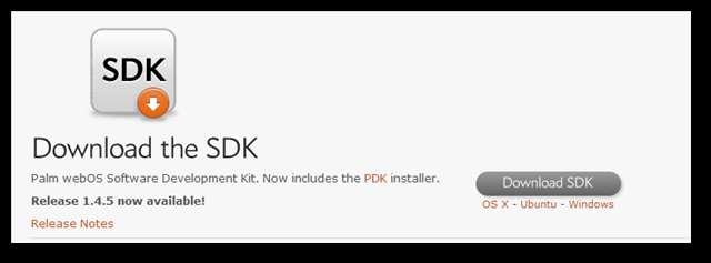 Most telepíthetjük a tényleges Palm SDK eszközöket, amelyek telepítik számunkra a webOS emulátort. Nyissa meg a Palm fejlesztői webhelyét (link az alábbi linken), és töltse le a legújabb SDK-t.
