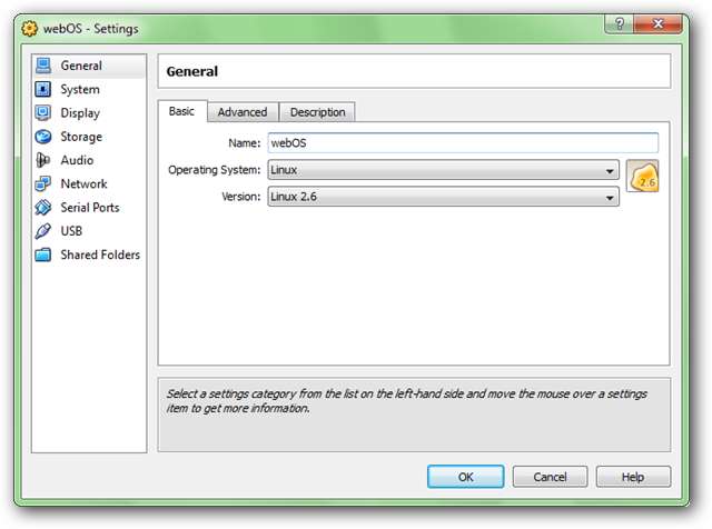 Jelölje ki a virtuális gépet, és kattintson a beállításokra, hogy átnevezze a virtuális gépet valamire, amely sokkal értelmesebb az Ön számára. Egyszerűen a webOS-nak neveztem el az enyémet.