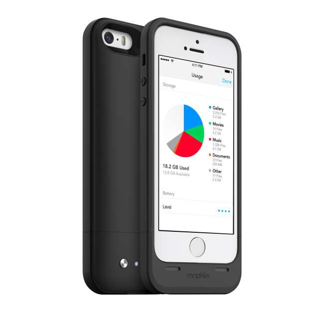 A Mophie Space Pack extra tárhelyet biztosít az iPhone-hoz, a meghosszabbított akkumulátorral együtt. Noha nem tudja közvetlenül meghosszabbítani a beépített iOS-tárhelyet, a Mophie rendelkezik egy alkalmazással, amellyel hozzáférhet videókhoz, fájlokhoz és képekhez, és közvetlenül a számítógépéhez csatlakoztatva töltheti fel fájlokkal.