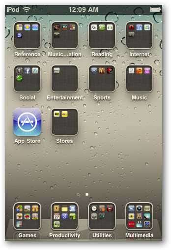 Itt van az iPod Touch 32 GB-os, 3. generációs eszközünk. Vegyük észre, hogy a legtöbb van bennünk mappák az új iOS 4 funkcióval . Mivel nem akarunk időt vesztegetni az új mappák, alkalmazások és zenék beállításával ... az iTunes 10 biztonsági mentési funkcióját fogjuk használni ... igen az iTunes ... mivel valójában jól működik, és regisztrálhatja az eszközt is .
