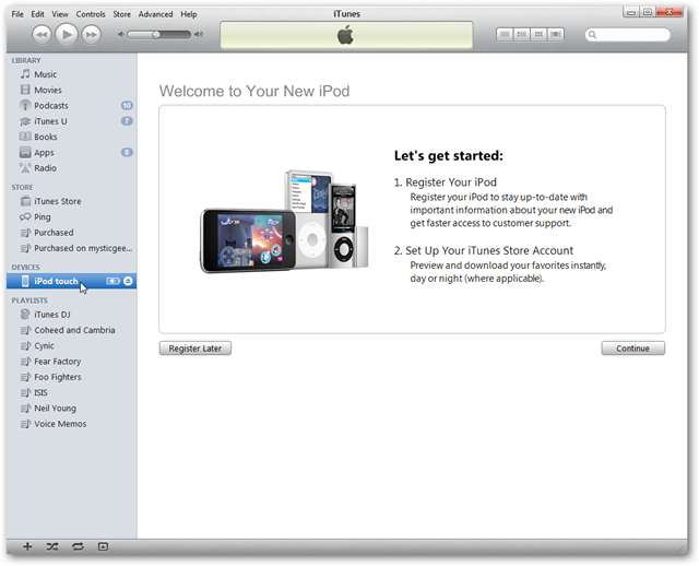 Ezután csatlakoztassa az új iPod-ot, kattintson az eszközre, és végig kell végeznie a regisztrációs folyamatot. Vagy később regisztrálhatja, ha akarja.