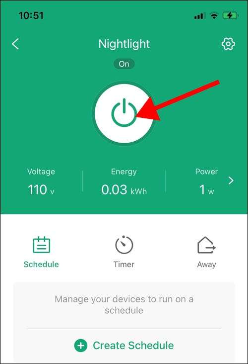 Miután beállította az okos dugó, akkor kapcsolja be és ki az adott alkalmazásban. Az app, akkor is létrehozhat egy ütemtervet, hogy működik.