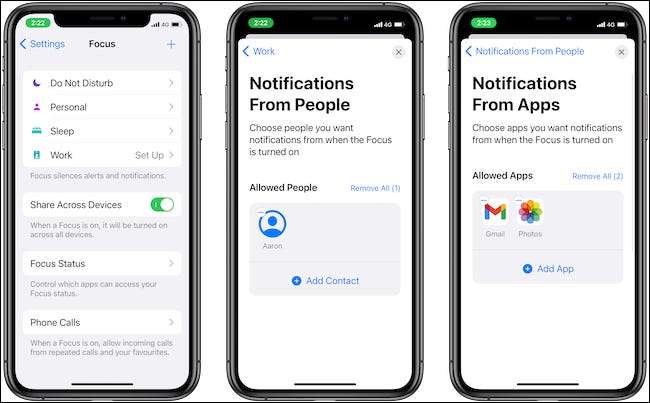 Ezt megteheti, ha beállít egy új Focus (Apple létrehozott egy szép lépésről-lépésre folyamat, ahol felveheti alkalmazások és a névjegyek a fehér lista), illetve később a Beállítások alkalmazásban (van egy vadonatúj Focus szakaszt Beállítások).
