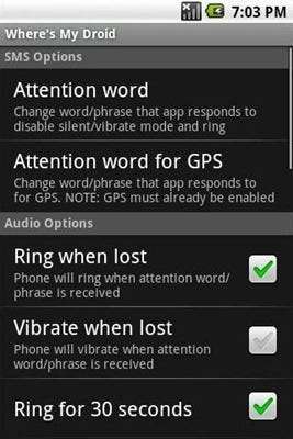 Az Android-felhasználóknak is rengeteg lehetőségük van. Hol a Droidom jó lehetőség. Küldhet SMS-t a telefonjának egy előre elrendezett kódszóval, és ez automatikusan bekapcsolja a GPS-t, elküldi annak koordinátáit és / vagy teljes hangerővel elindítja a csengőhangot (függetlenül a hangerő / néma beállításoktól). Vigyázz egy olyan víruskereső és biztonsági alkalmazás, amely hasonló funkciót kínál, mint a Wheres My Droid. A prémium verzió segítségével távolról is törölheti telefonját. Néhány ember a funkció használatával replikálta ezeket a funkciókat Táskák alkalmazások vagy szolgáltatások használata helyett. Valójában nemrég tudtam meg, hogy sok Motorola eszköz, mint például az Atrix, a MotoBlur olyan verzióját használja, amely beépített „távoli törlés” paranccsal rendelkezik, így előfordulhat, hogy még egy alkalmazásra sincs szüksége, ha a gyártó ezt hozzáadta a telefonjához.