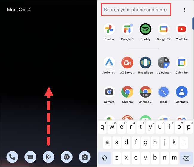 Ha van egy Google Pixel Telefon Android 12-vel, akkor ezt kipróbálhatja, ha a kezdőképernyőn megjelenik az App fiók megnyitásához, majd írja be a tetején található keresősávot.