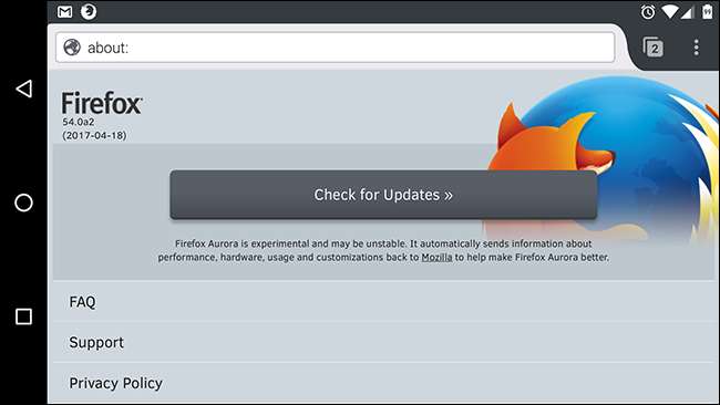 A béta kiadás egy „verzió” a stabil kiadás előtt - az írás idején a Firefox stabil felépítése az 53-as, a béta viszont az 54-es verzióval készült. Ez a verzió azoknak szól, akik hozzáférést akarnak az új funkciókhoz. kicsit gyorsabban. A bétaverziós funkciók általában úton vannak a kiadáshoz, bár nem feltétlenül jutnak el oda a következő kiadásnál.