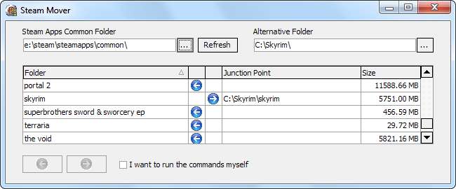 Steam Mover bahkan dapat menunjukkan kepada Anda perintah yang akan dijalankannya, sehingga Anda dapat menjalankannya sendiri - jika Anda benar-benar menginginkannya. Alat ini juga berfungsi dengan folder lain di sistem Anda - bukan hanya game Steam.