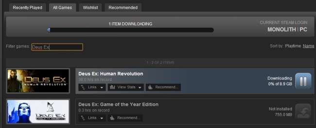 Jika Anda membiarkan Steam tetap berjalan di PC game Anda di rumah, Anda dapat memulai unduhan game dari browser web (atau aplikasi Steam untuk Android atau iOS) dan game akan siap dimainkan saat Anda tiba di rumah. Untuk memulai pengunduhan jarak jauh dari browser web Anda, buka Situs Komunitas Steam , masuk dengan akun Steam Anda, lihat daftar permainan Anda, dan klik salah satu tombol unduh.