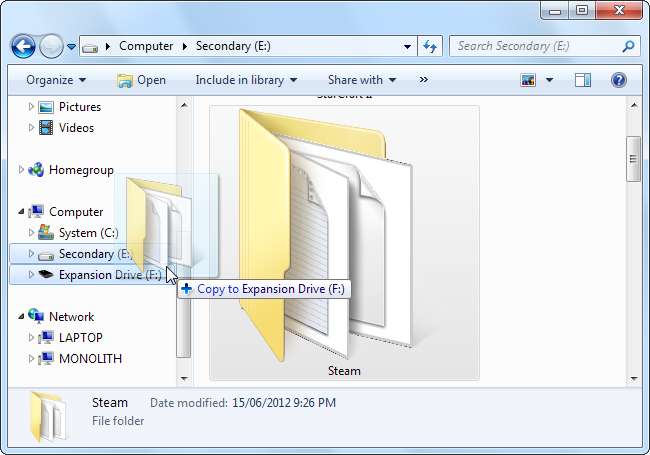 Ada cara lain untuk membuat salinan cadangan game Anda atau mentransfer game ke komputer baru juga. Cukup salin seluruh direktori Steam Anda. Tidak seperti banyak program, Steam tidak akan mengeluh tentang hilangnya pengaturan registri jika Anda memindahkan foldernya antar komputer - Anda cukup menyalin direktori Steam dan meluncurkan Steam.exe tanpa harus memasang Steam atau mengunduh ulang game Anda.