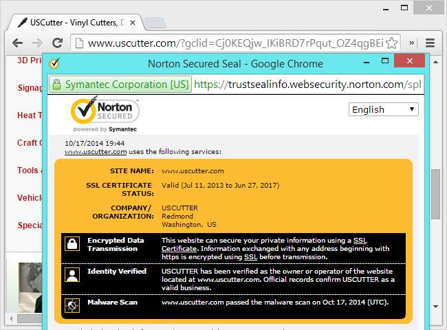 Secara teori, Anda harus dapat mengeklik lencana tersebut dan langsung membuka situs web yang memberikan segel persetujuan. Situs web penyedia segel kemudian akan memberi tahu Anda apakah situs web asli tempat Anda berada benar-benar tepercaya.