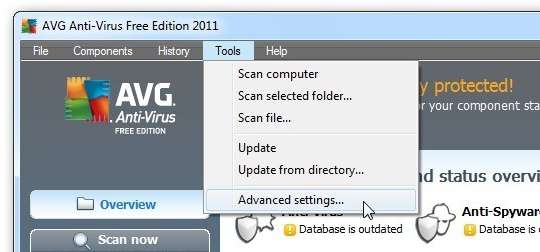 Seperti yang kami sebutkan sebelumnya, AVG bekerja sedikit berbeda — jika Anda membuka Alat -> Pengaturan lanjutan…