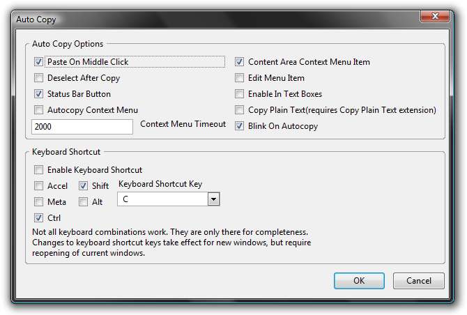 Ekstensi AutoCopy akan secara otomatis menyalin ke clipboard teks apa pun yang Anda pilih, dan memungkinkan Anda untuk menempelkannya dengan klik tengah di manapun di Firefox.