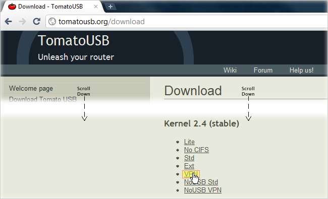 Hal pertama yang ingin Anda lakukan adalah mengunjungi TomatoUSB beranda dan klik tautan Unduh USB Tomat.