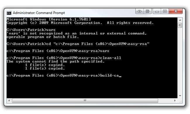 cd c: \ Program Files \ OpenVPN \ easy-rsa