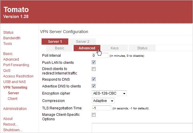 Ide dasarnya sekarang adalah menyalin sertifikat dan kunci server yang kami buat sebelumnya dan menempelkannya ke menu server VPN Tomat. Kemudian kami akan memeriksa beberapa pengaturan di Tomato, menguji koneksi VPN, dan kemudian kami akan dapat mencuci tangan dan menghentikannya!