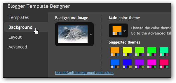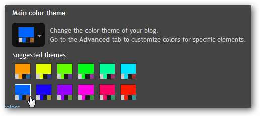 Kembali ke tab Latar Belakang, Anda dapat memilih langit-langit warna yang telah dibuat sebelumnya, atau klik tombol atas untuk memilih warna dasar yang berbeda. Perhatikan bahwa Blogger akan secara otomatis mengganti skema warna Anda agar sesuai dengan latar belakang yang Anda pilih, tetapi Anda masih dapat menyesuaikannya jika Anda mau.