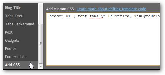 Anda bahkan dapat menambahkan CSS khusus ke tema Anda dari Add CSS tab. Anda dapat langsung melihat perubahannya di pratinjau blog di bawahnya, yang merupakan cara terbaik untuk memastikan Anda mengubahnya sesuai keinginan. Ini memungkinkan Anda benar-benar menyesuaikan tema sesuka Anda.