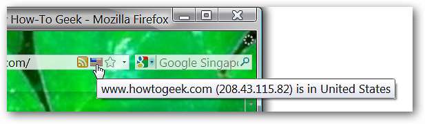 Sekarang Anda dapat melihat perbedaannya ketika kami mengunjungi situs web How-To Geek setelah menginstal ekstensi Flagfox. Perhatikan simbol bendera kecil di bilah alamat (lokasi default).