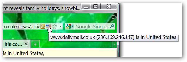 Perhatikan apa yang terjadi setelah mengarahkan mouse ke simbol bendera kecil. Sekarang kita dapat melihat alamat situs web, alamat IP, dan negara tempat server situs web berada. Sedikit informasi yang sangat bagus!