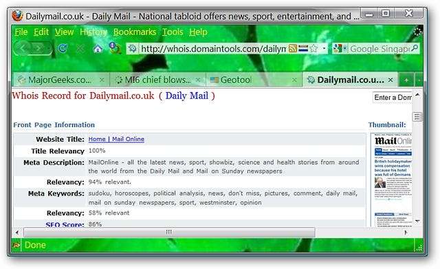 Siap untuk informasi lebih lanjut? Klik tengah pada simbol bendera untuk melihat informasi rinci tentang domain situs web.