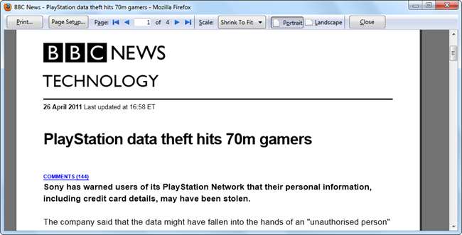 Berikut adalah contoh tampilan yang dapat dicetak dengan format yang benar - tanpa harus repot mencari tautan cetak. Situs BBC News memformat artikel dengan rapi untuk dicetak, lengkap dengan tajuk khusus. Mereka memang menyertakan komentar dalam tampilan cetak, tapi itu masih pekerjaan yang dilakukan dengan baik.